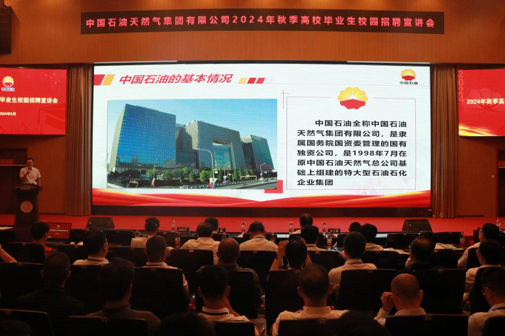 中國石油招聘宣講代表對企業情況、發展前景、人才成長路徑、薪酬待遇、崗位需求、招聘流程進行了介紹。