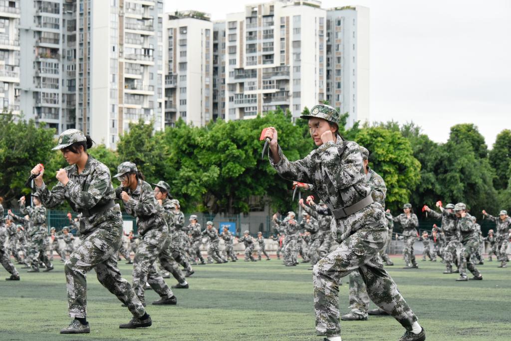 迎著朝陽,莊嚴肅立,全體在場師生行注目禮,鮮艷的五星紅旗冉冉升起。升旗儀式后,閱兵式正式開始。舉字方陣、軍體拳方陣、刺殺操方陣、匕首術方陣等依次登場。他們身姿矯健,英姿颯爽,彰顯了青年為中國式現代化挺膺擔當的青春風采。