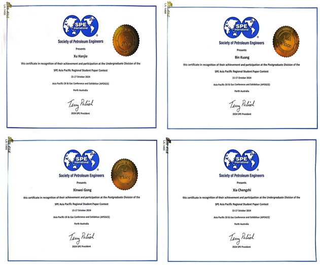 我校學生自2012年首次參加國際石油工程師協會(SPE)亞太油氣會議展覽、全球油氣會議展覽以來,1人獲得本科生組全球冠軍,2人獲得本科生組亞太冠軍,3人獲得研究生組亞太冠軍。
