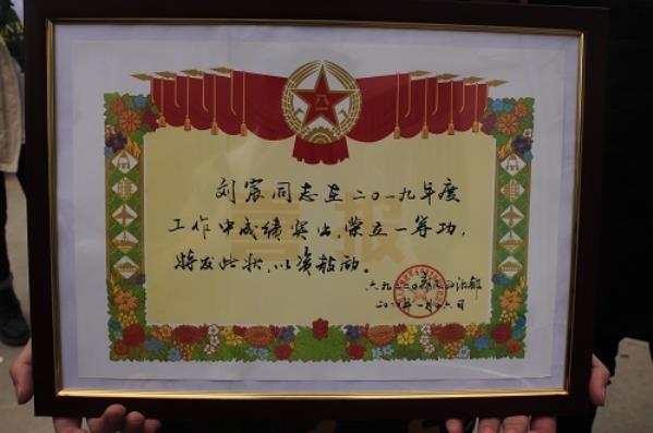 近日,中國人民解放軍69220部隊領導來到綿陽市三臺縣,與三臺縣人武部、退役軍人事務局領導一起為我校2017年入伍學生劉宸送去“一等功”立功喜報。
