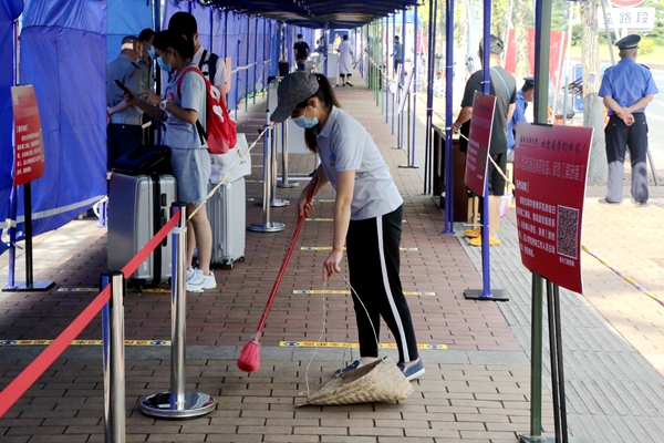 返校學生掃描返校通道“報到碼”獲取“到校碼”