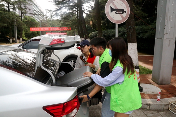 后勤服務公司還組建了黨員義工愛心車隊,組織教職工黨員在西大門幫助返校學生搬運行李等學習生活用品,各學院分別組織了40余名師生志愿者,每天早上8點30分至晚上9點30分全力迎接學生返校,提供貼心周到的接站服務,歡迎校區學子回家。工程學院學生楊瑩凌說:“回到石大,不僅有老師和志愿者幫忙搬運繁重的行李,還能乘坐老師的愛心擺渡車,就一個字——‘暖’!”