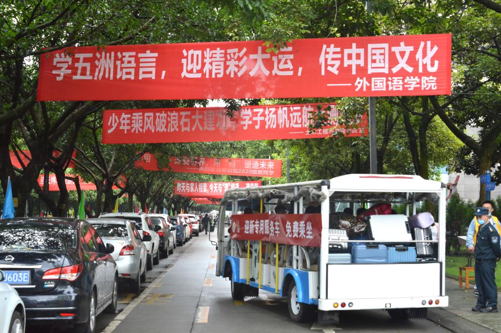 保衛(wèi)處提前搭建學(xué)生報(bào)到安檢通道,安排安保人員現(xiàn)場(chǎng)值班,加強(qiáng)校園巡邏力度,安排人員在校內(nèi)主干道、重點(diǎn)區(qū)域進(jìn)行秩序維護(hù)。組織退役學(xué)生為新生提供志愿服務(wù),提供擺渡車運(yùn)送學(xué)生。