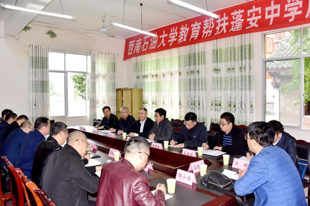 10月16日,在我國第7個“扶貧日”來臨之際,校黨委書記趙正文一行赴蓬安縣調研督導精準扶貧工作,在蓬安縣委常委、常務副縣長楊佳的全程陪同下,先后走訪調研了蓬安中學、長梁小學、鵝項頸村。