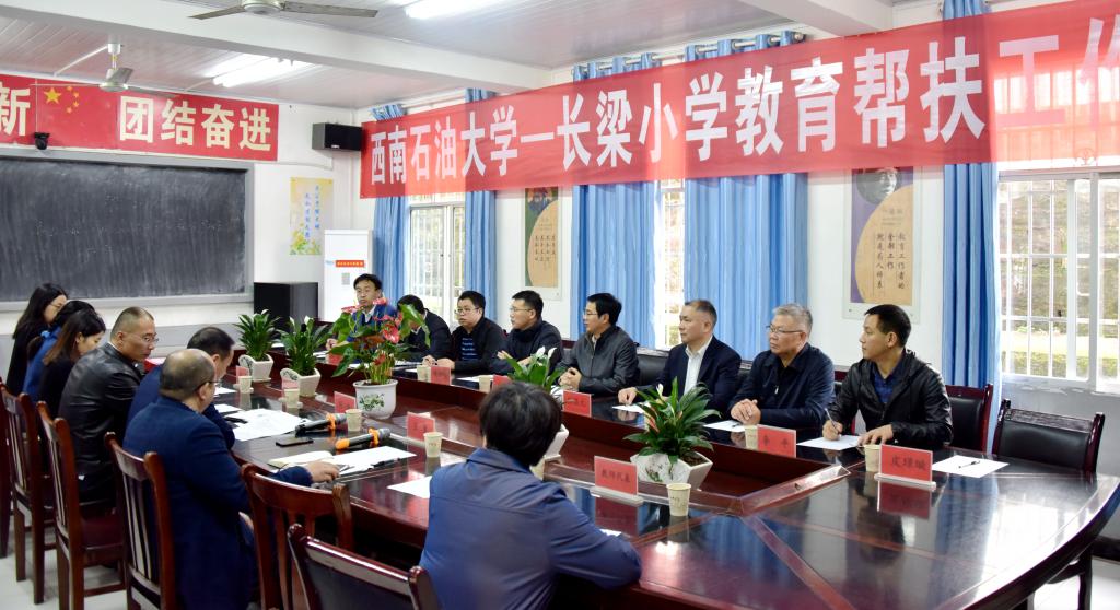 趙正文一行先后來到蓬安中學、長梁小學參觀校園和智慧課堂,了解學校教育扶貧工作開展情況,與師生進行教育幫扶座談會。在長梁小學,趙正文向優秀學生代表頒發了獎學金獲獎證書,勉勵同學們以西南石油大學“為祖國加油,為民族爭氣”的大學精神為指引,心懷夢想,樹立志向,為自己和家人的幸福生活而發奮圖強,快樂學習。
