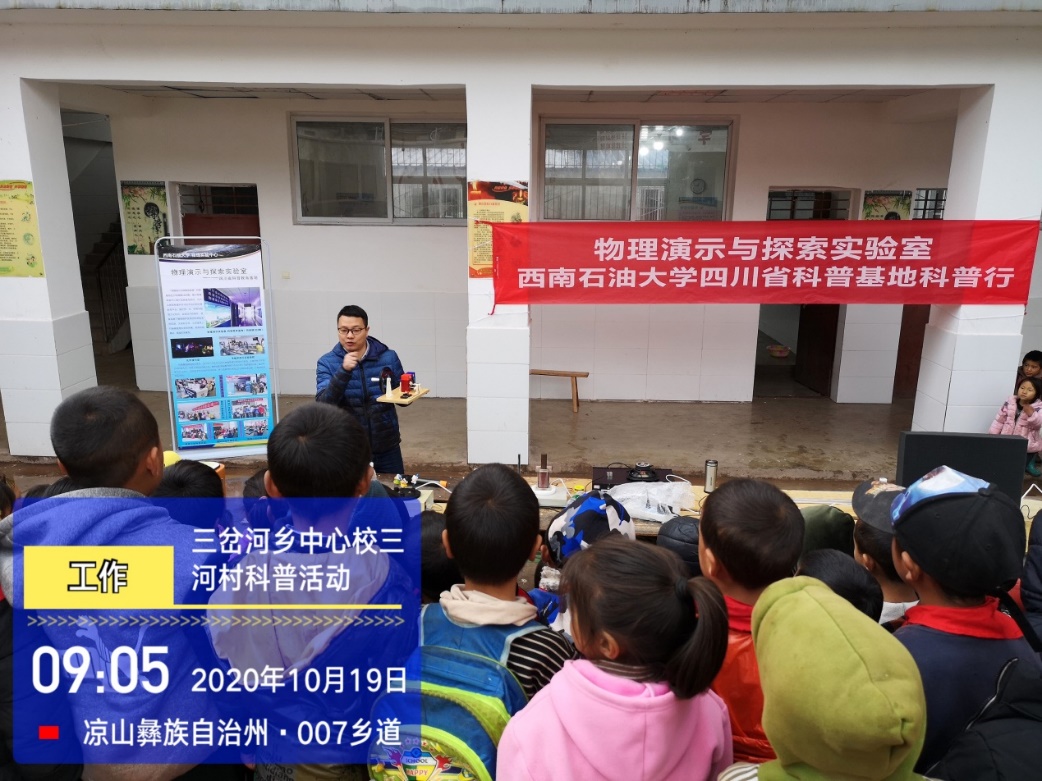 為加強科技扶貧,根據學校黨委安排,經扶貧辦協調并在科研處的大力支持下,10月16-19日,理學院黨委書記劉廷平帶領物理演示與探索實驗室教師謝照順、周云旭到涼山州金陽縣和昭覺縣開展科普教育活動。這項活動也是我校開展的國家扶貧日系列活動之一。