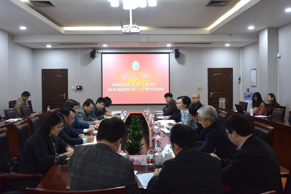 10月30日上午,中國地質(zhì)大學(xué)(北京)副校長劉大錳一行六人來校訪問,副校長劉向君與劉大錳一行在辦公樓208進(jìn)行了座談交流。發(fā)展規(guī)劃處處長張智主持會議。