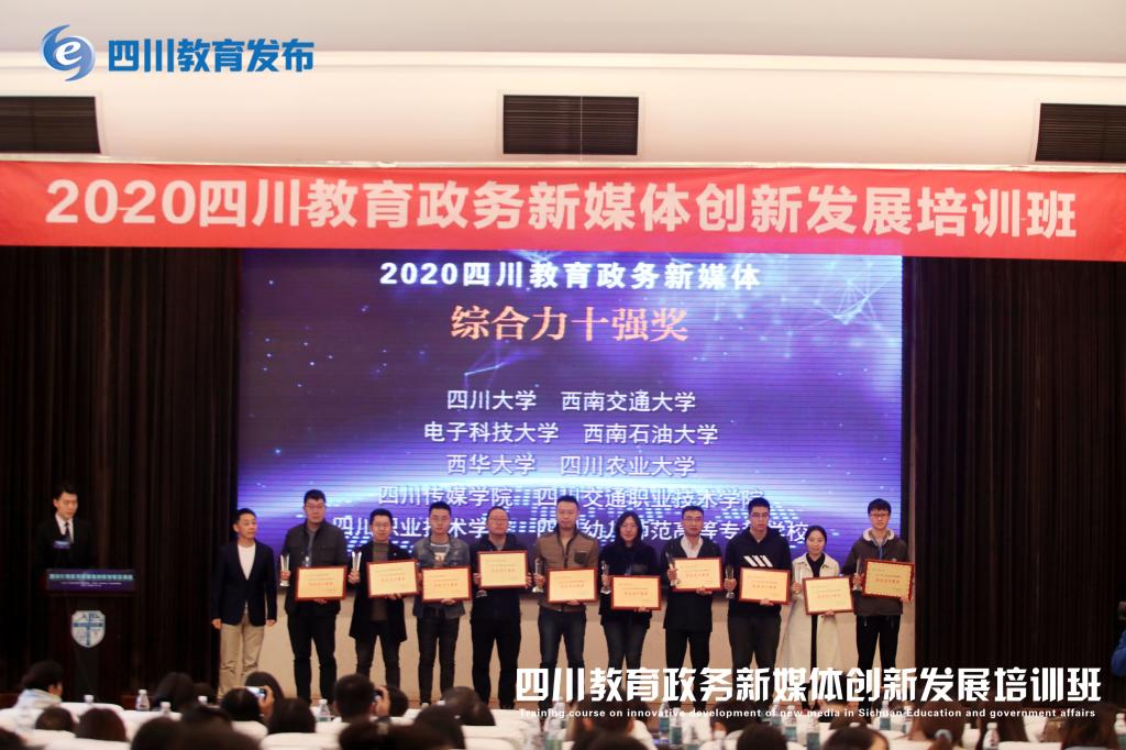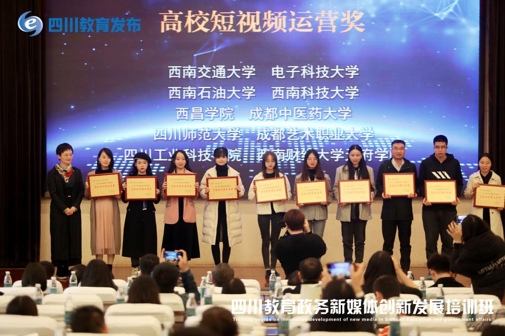 10月29日至31日,四川教育政務新媒體創新發展培訓班在西南交通大學峨眉校區揚華堂開班。培訓班上表彰了一批在全省教育新媒體矩陣中涌現出的優秀賬號和先進組織單位,我校獲2020四川教育政務新媒體“綜合力十強獎”“高校短視頻運營獎”兩項榮譽。