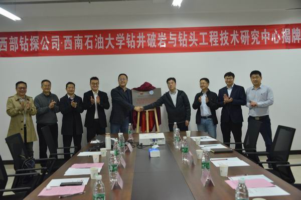 11月3日上午,“西部鉆探公司?西南石油大學鉆井破巖與鉆頭工程技術研究中心”揭牌儀式在我校鉆頭研究所舉行,科研處處長楊兆中與中石油西部鉆探工程技術研究院院長、黨委副書記宋朝暉共同為中心揭牌。