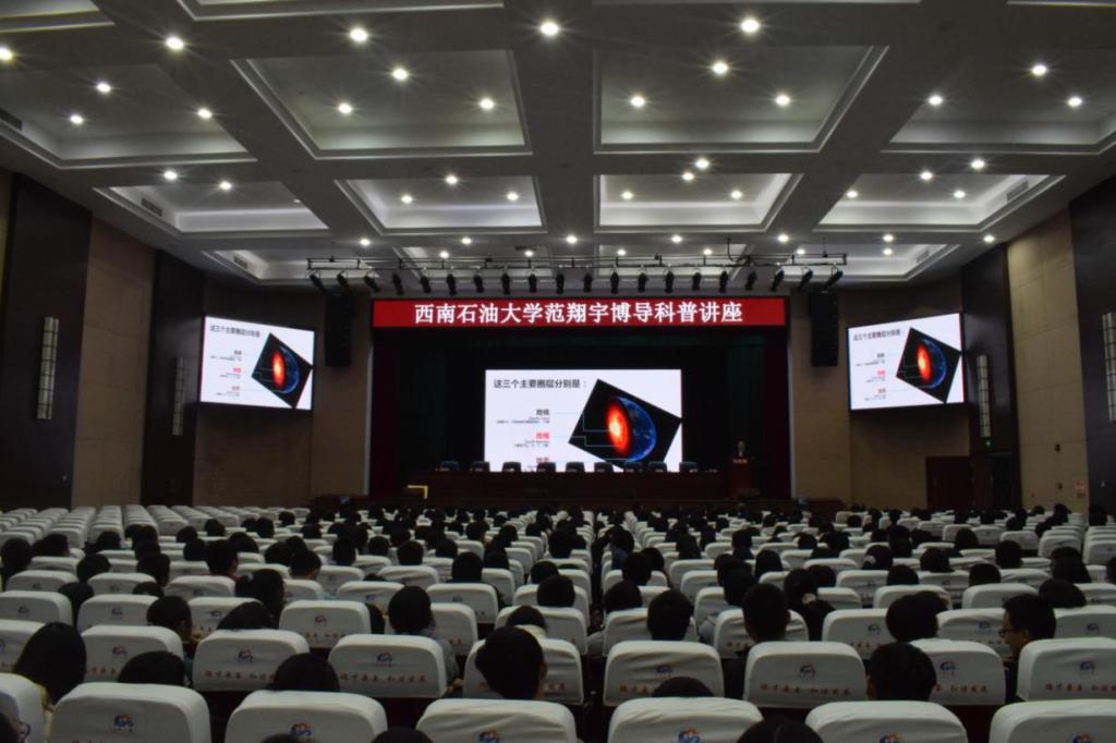 范翔宇教授以“初心和夢想”為切入點,向同學們講述了他的成長經歷以及他作為一名石油人的初心和夢想。隨后用淺顯易懂、幽默風趣的語言為同學們講述了石油與天然氣的由來,并結合石油與天然氣在世界上的分布向大家分析了國際石油局勢,讓同學們清晰認識到了我國能源安全形勢。在四場講座過程中,范翔宇不斷與同學們互動,向同學們展示了石油工業與現代科技的融合,激發了同學們對地質勘探和石油開采的興趣。