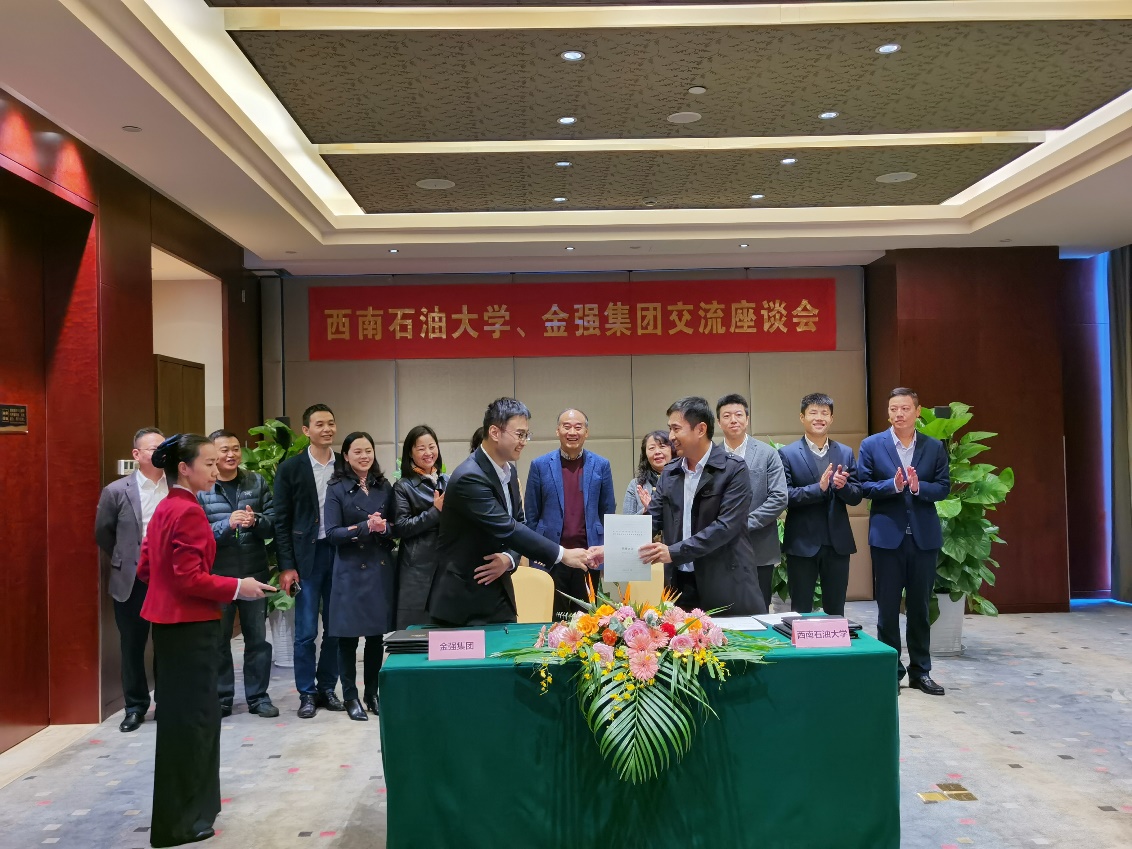 簽署儀式前,雙方進行了座談交流,并一同觀看了金強集團的視頻簡介和西南石油大學宣傳片。