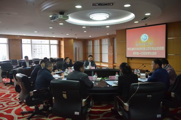 公司人事處副處長曹雪峰、企管法規處副處長陳明、新興物探處處長張立欣、西南物探分公司總經理王勤耕、中油奧博總經理王熙明、公司高級專家余剛、公司辦公室科長梁家豪,我校黨辦校辦、地科院、人事處、國際合作與交流處、科研處負責人參加了會談。