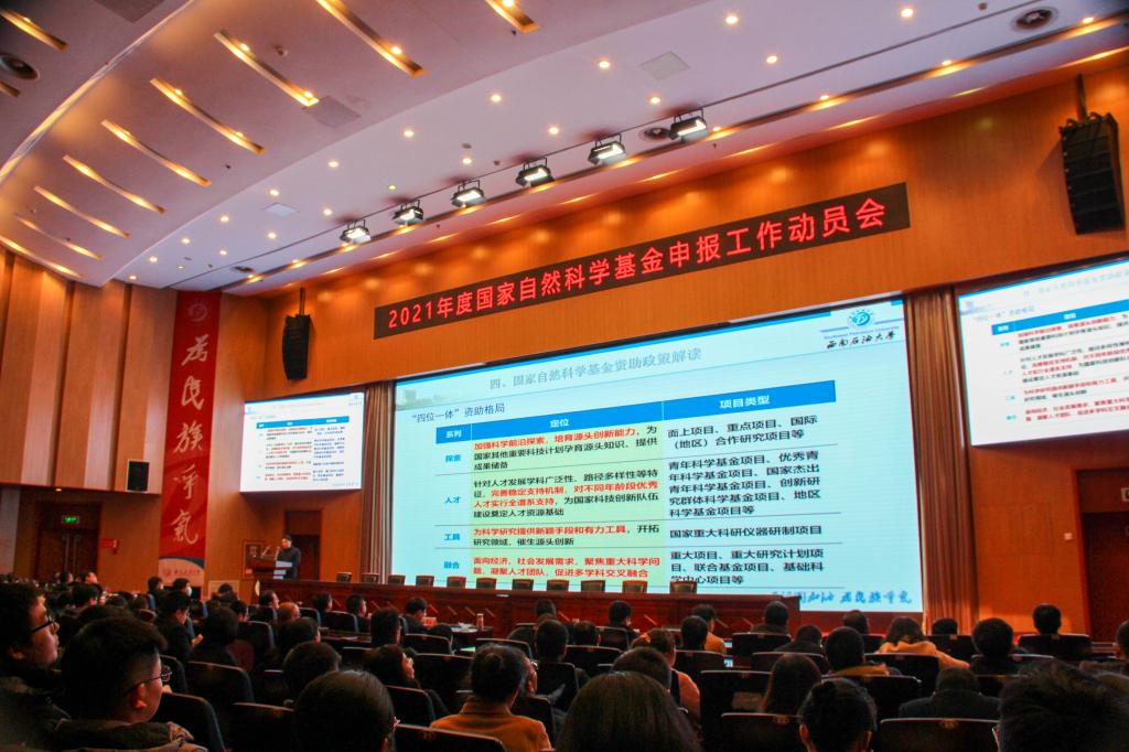 會議旨在切實做好2021年度國家自然科學基金(以下簡稱“基金”)申報工作,進一步提高學校基金申報質量,發揮基礎研究對學院發展、學科建設和學校“雙一流”建設的作用,持續提升學校基礎研究和公共平臺競爭力。
