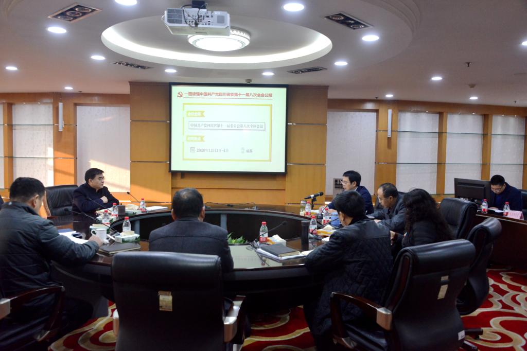 校黨委書記趙正文主持學習了四川省委十一屆八次全會精神。12月3日至4日,中共四川省第十一屆委員會第八次全體會議在成都舉行,省委書記彭清華作了講話。全會聽取和討論了彭清華代表省委常委會作的工作報告,審議通過了《中共四川省委關于制定四川省國民經濟和社會發展第十四個五年規劃和二〇三五年遠景目標的建議》。