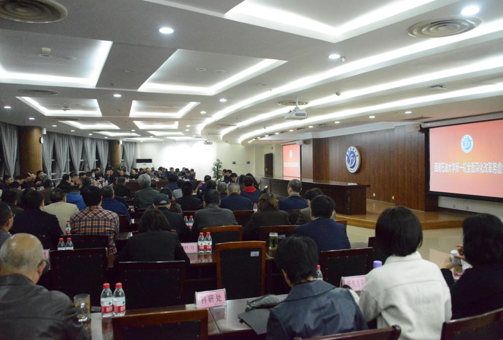 就如何高質量推進新一輪深化改革,趙正文提出三點意見。一是必須匯集每一個西南石大人的智慧和力量。60多年來,一代代西南石大人披肝瀝膽、勵精圖治,共同書寫了一部學校發展的艱難創業史和艱苦奮斗史。學校事業發展全面邁上新臺階、進入新時代,只要我們每一個西南石大人精誠團結、共同奮斗,就一定能朝著我們的既定目標繼續奮勇前進并且取得成功。