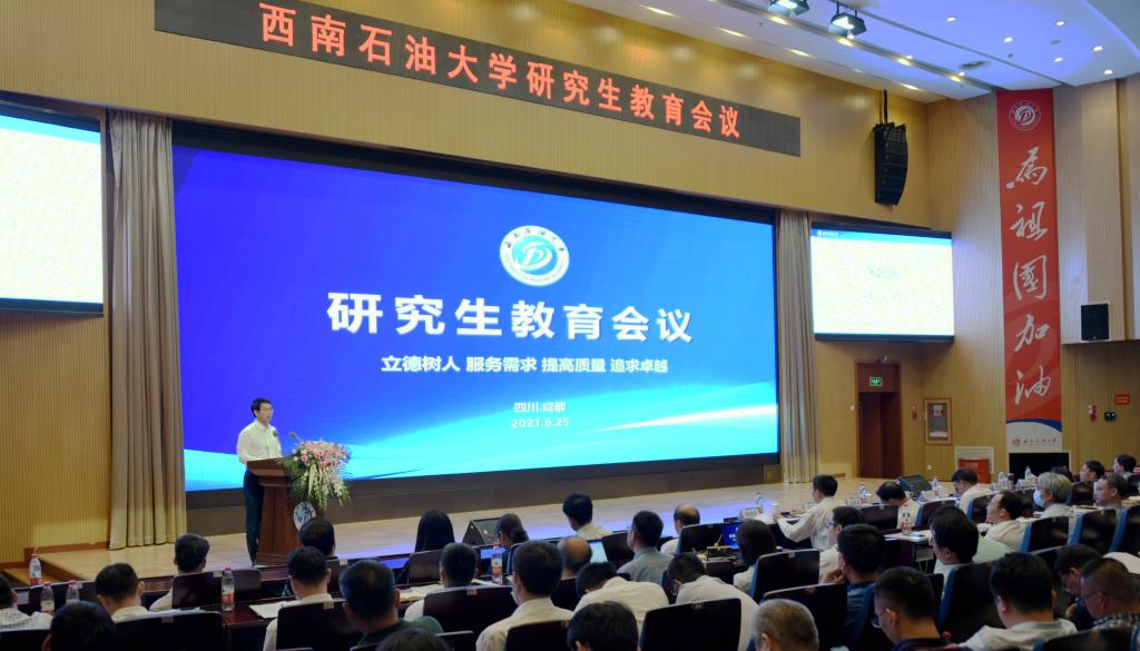 四川省學位委員會辦公室副主任、四川省教育廳科學技術與研究生教育處副處長黃武,全國工程專業學位研究生教育指導委員會秘書處、清華大學專業學位教育辦公室主任連彥青出席會議,校領導趙正文、趙金洲、郭世一、衡彤、巫曉兵、張烈輝、郭建春、劉向君,機關各職能部門及直屬單位負責人,各學院負責人,全體博士生導師和碩士生導師,研究生代表,南充校區師生代表等共計1000余人參會。會議由校黨委常委、副校長郭建春主持。