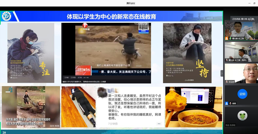 首先我校化工院卿大詠老師圍繞《以課程中心平臺為例談如何常態下開展在線教學》的主題做報告。他從“適應在線教育新常態,練好內功,做學生歡迎的老師”的角度切入,結合《實驗師安全教育》課程為例分享了在線教育的開展情況,并對借助網絡教學平臺掌握學生的學習情況、更好地將網絡課程平臺作為與學生更多溝通途徑的實施做了深入淺出的分析,指出體現以學生為中心的新常態在線教育是廣大教師需要重點關注的問題,并對網絡課程建設和在線課堂建設的相關經驗進行了分享。