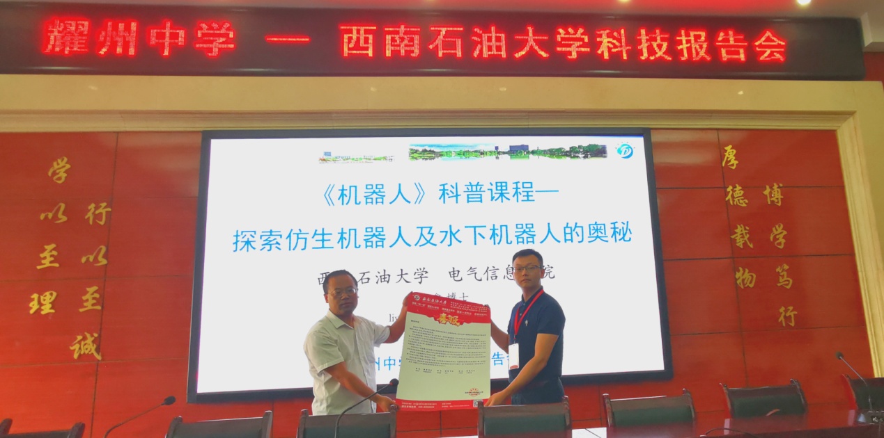 校慶當(dāng)日,電氣信息學(xué)院副研究員李亞鑫為同學(xué)們作了題為《機(jī)器人科普課程——探索仿生機(jī)器人及水下機(jī)器人的奧秘》的科普講座。李亞鑫以自己的研究方向?yàn)榛A(chǔ),以同學(xué)們的興趣愛好為導(dǎo)向,結(jié)合自己的研究經(jīng)驗(yàn),介紹了目前水下機(jī)器人及仿生機(jī)器人技術(shù)的最新成果和發(fā)展方向。通過幽默的語言、淵博的知識(shí)使在場(chǎng)同學(xué)了解了人工智能的發(fā)展,激發(fā)了同學(xué)們對(duì)人工智能的興趣,感受到科技創(chuàng)新帶來的魅力,現(xiàn)場(chǎng)響起陣陣掌聲,報(bào)告最后李老師寄語同學(xué)們,要業(yè)精于勤,不負(fù)韶華,夢(mèng)圓理想的大學(xué)。