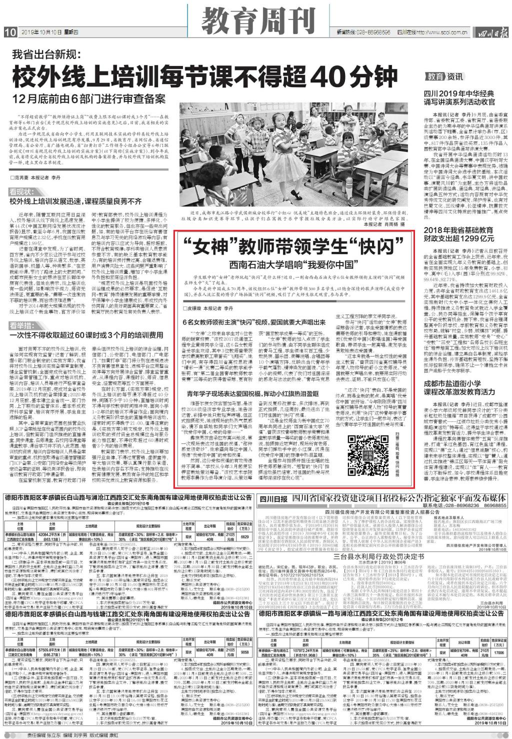《四川日報》10月10日第10版“教育周刊”報道