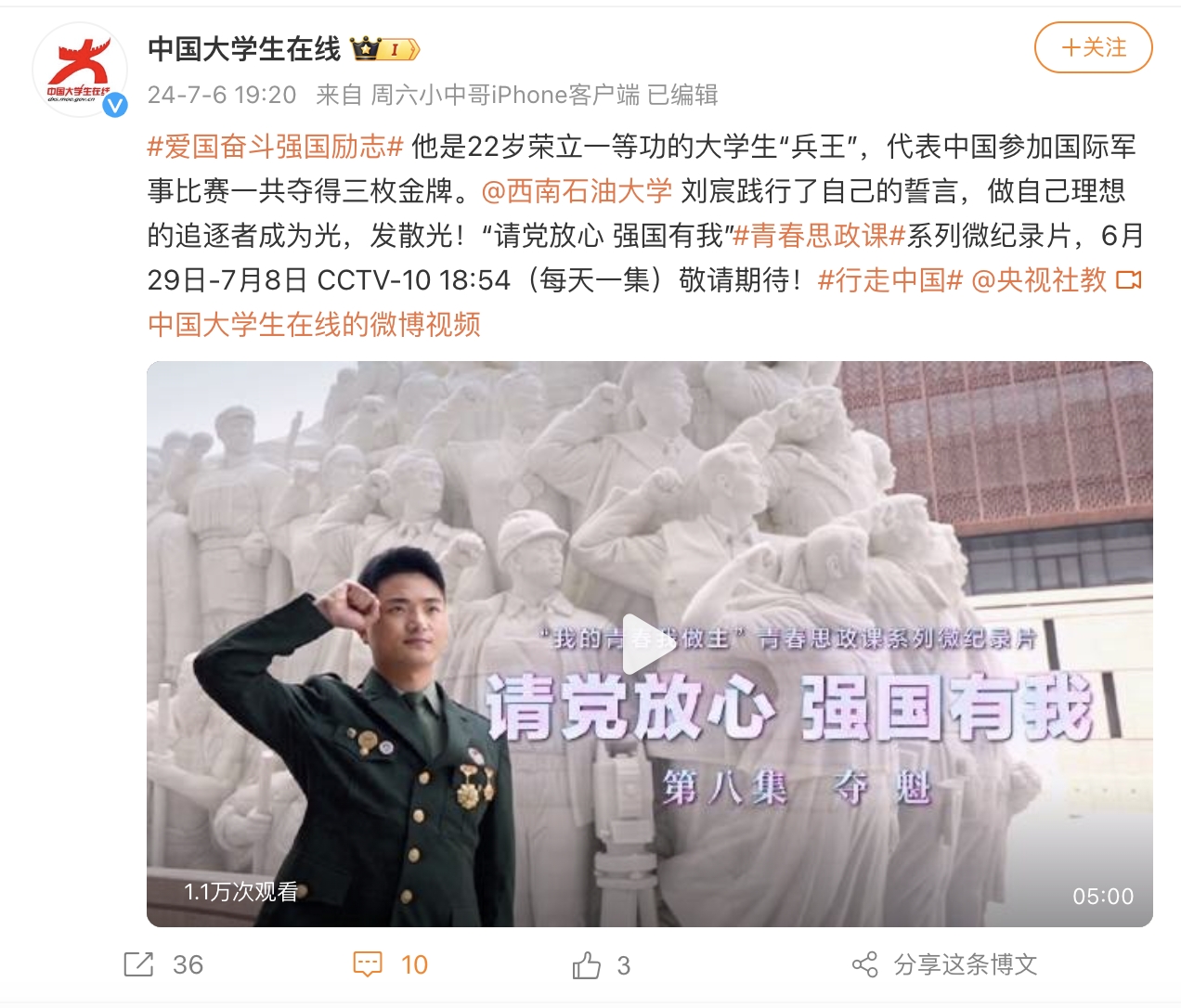 中國大學(xué)生在線報道鏈接:https://weibo.com/1708159150/5053219187982357?wm=3333_2001&from=10E5393010&sourcetype=weixin&s_trans=3187393805_5053219187982357&s_channel=4