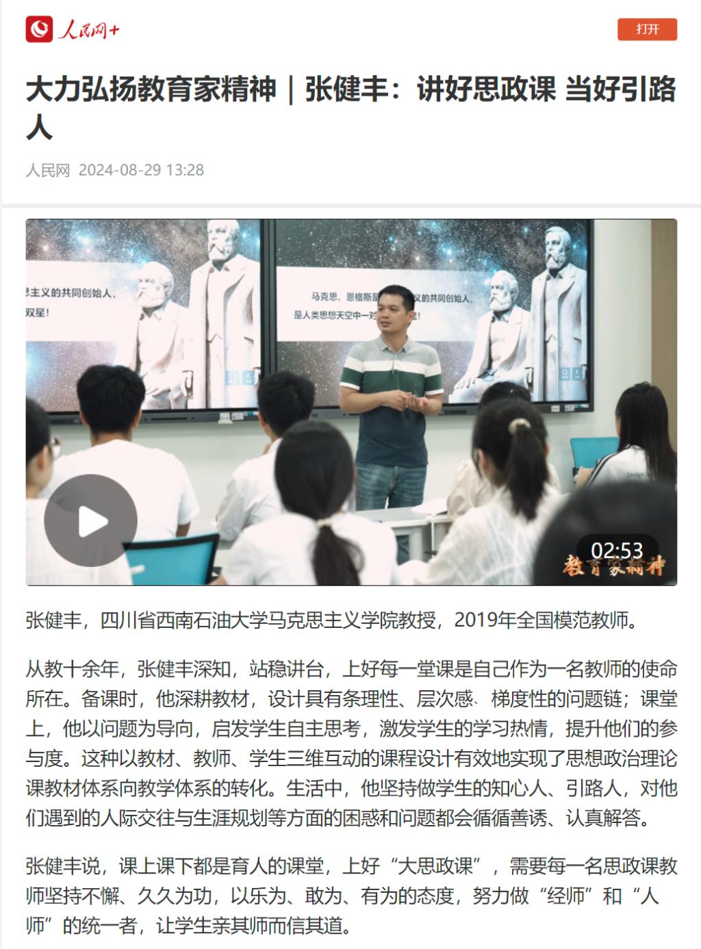 張健豐,四川省西南石油大學馬克思主義學院教授,2019年全國模范教師。
