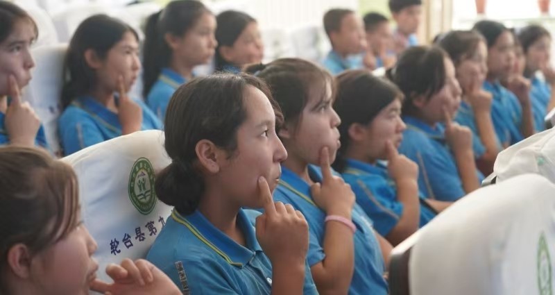 團隊指導維吾爾族學生練習口部操