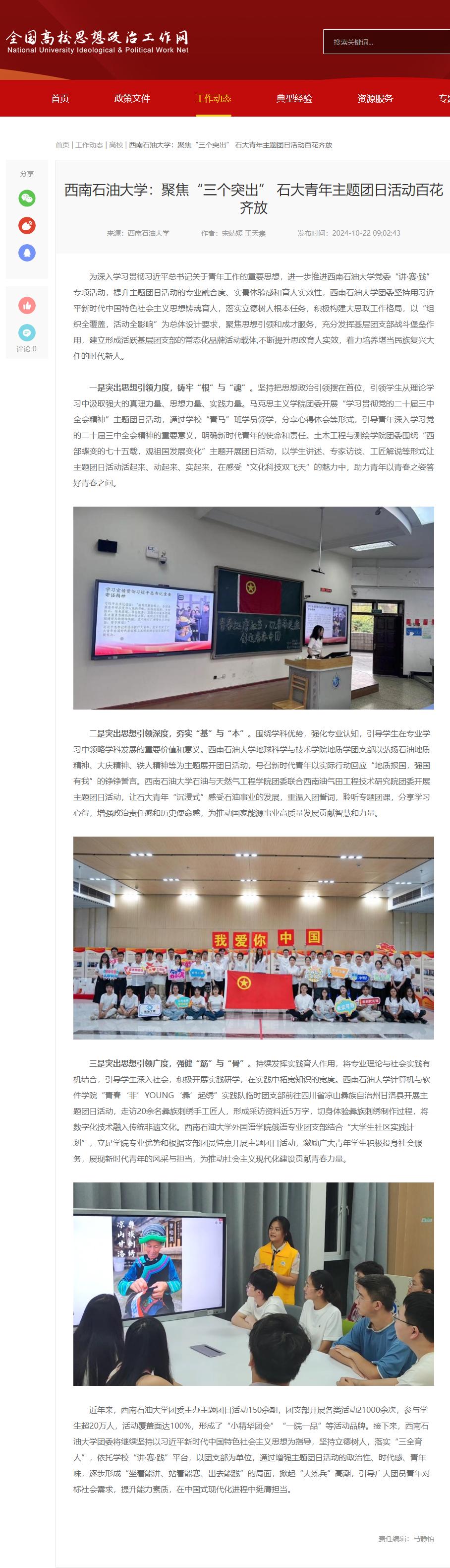 報道鏈接:西南石油大學:聚焦“三個突出” 石大青年主題團日活動百花齊放 - 高校 - 全國高校思想政治工作網