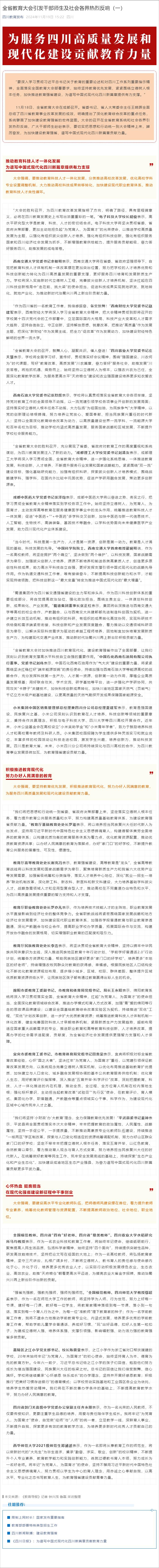 “全省教育大會的召開,鼓舞人心、凝聚共識、催人奮進!”四川農業大學黨委書記莊天慧表示,學校將全面學習好、宣傳好、貫徹落實好會議精神,圍繞“強國建設、川農何為”時代課題,寫好“教育改革、高質發展”川農篇章,奮力答好“服務社會、助推發展”川農答卷。將搶抓機遇、乘勢而上,始終堅持以立德樹人為根本,以強農興農為己任,全面深化教育教學改革,為服務更高水平“天府糧倉”建設和農業強國建設培養更多知農愛農人才。
