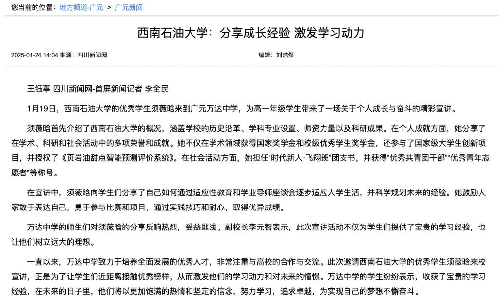 廣元日報報道鏈接:https://e.gyxww.cn/gyrb/html/202501/23/node_A05.html