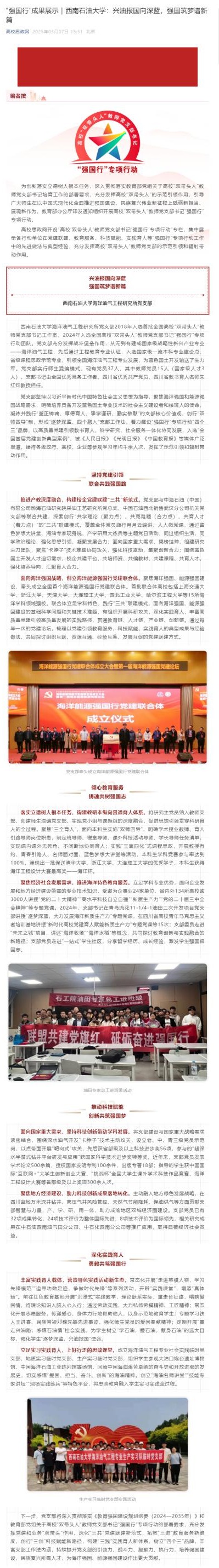 下一步,黨支部將深入貫徹落實《教育強國建設規劃綱要(2024—2035年)》和教育部黨組關于高校“雙帶頭人”教師黨支部書記“強國行”專項行動的部署要求,充分發揮黨建和業務“雙帶頭”作用,深化“三共”黨建聯建新范式,拓寬“三進”教育服務新維度,創行“三創”科技賦能新路徑,構建“三踐”實踐育人新體系,樹立“四個三”品牌,豐富支部工作法內涵,持續提升黨支部的引領力、戰斗力、凝聚力、執行力,培養強國建設、民族復興所需人才,為海洋強國、能源強國建設作出更大貢獻。
