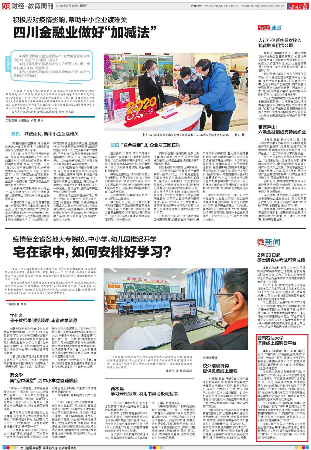 報道鏈接:https://epaper.scdaily.cn/shtml/scrb/20200212/231297.shtml