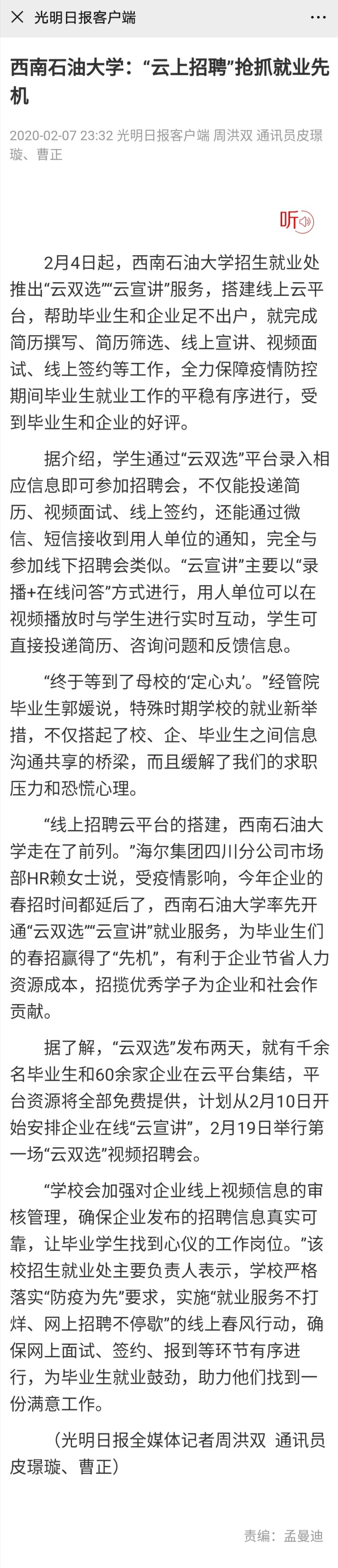 http://share.cloud.gmw.cn/yunmei-share/?shareTitle=%20%E8%A5%BF%E5%8D%97%E7%9F%B3%E6%B2%B9%E5%A4%A7%E5%AD%A6%EF%BC%9A%E2%80%9C%E4%BA%91%E4%B8%8A%E6%8B%9B%E8%81%98%E2%80%9D%E6%8A%A2%E6%8A%93%E5%B0%B1%E4%B8%9A%E5%85%88%E6%9C%BA&shareImg=https://s.cloud.gmw.cn/2016/json/upload/resources/image/2016/12/13/6100070.png&shareDes=&sourceUrl=http://s.cloud.gmw.cn/gmrb/c/2020-02-07/1362173.shtml&articleId=1362173&token=807cf0013bcada6d538dac449392b10f&from=timeline