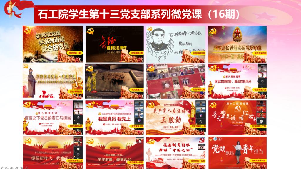 據悉,石工院學生第十三黨支部常態利用線上與線下、理論與實踐相結合方式落實黨員教育、管理與服務模式。支部創新開展微黨課(目前已錄制16期),深化學思踐悟,深化黨建創新,取得了良好的育人實效。