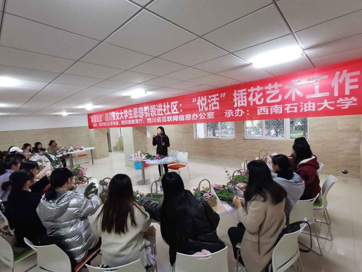12月1日,“悅活”插花藝術工作坊走進我校學生公寓22棟社區。該活動作為“春蕾綻放”四川省女大學生思想引領系列活動之一,由四川省婦女聯合會、四川省教育廳、四川省互聯網信息辦公室主辦,西南石油大學承辦,通過線上線下的體驗和展示,旨在引導女大學生感受插花藝術魅力,提升個人文化素質和審美素養,增強學生生活技能和勞動實踐,喚醒女大學生熱愛生活、自愛自強的意識。