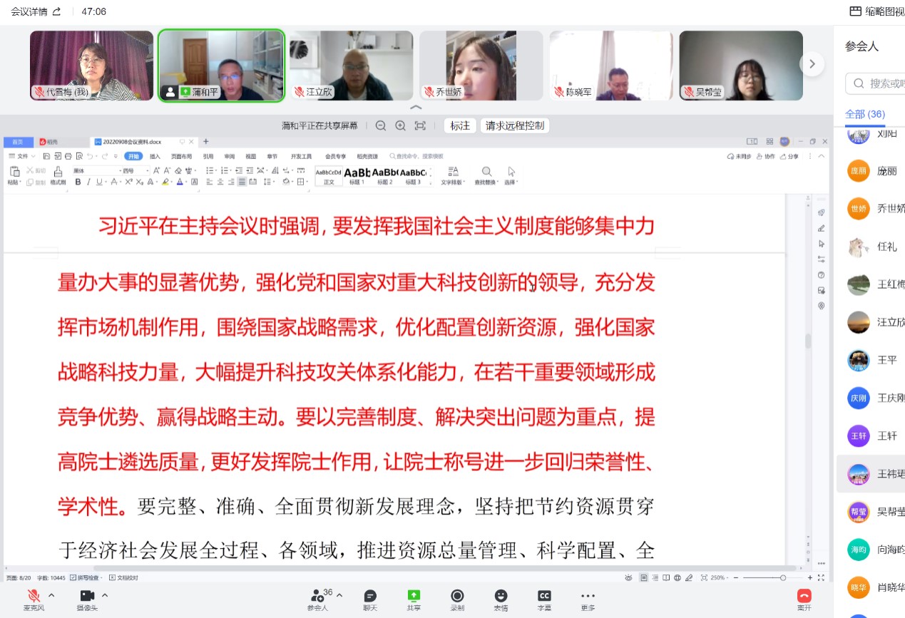 “黨員同志們,馬上開會了,大家都能聽得清聲音么?能看清楚畫面么?”9月8日下午,為了積極貫徹疫情期間強防控的要求,同時不影響黨員思想政治學習的開展,網信中心黨總支通過視頻會議的形式召開了黨員大會。會議由黨總支書記蒲和平主持,全體黨員參加會議。