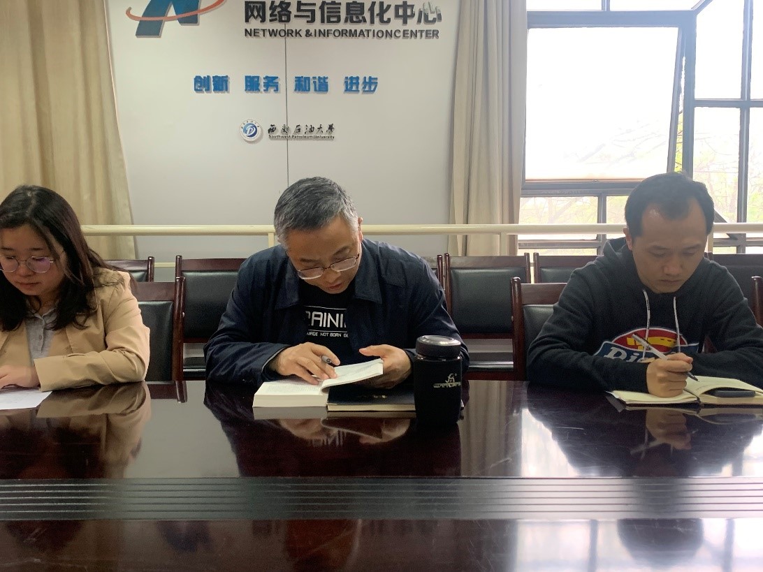 4月,網(wǎng)信中心各教工支部兩次(4月13日和4月27日)組織全體黨員接力朗讀《習(xí)近平新時代中國特色社會主義思想專題摘編》重點篇目,營造了人人參與、人人學(xué)習(xí)的濃厚氛圍。