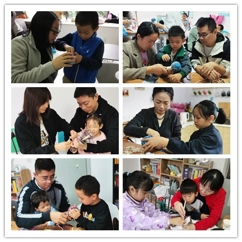 “孩子,幫我捏住錘頭”,“用點勁兒,寶貝”,制作艾草養生錘的場面熱鬧非凡。孩子和家長互相協作配合,都希望能用這個小小養生錘給長輩敲打出一個健康的身體。