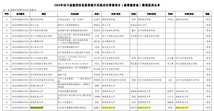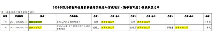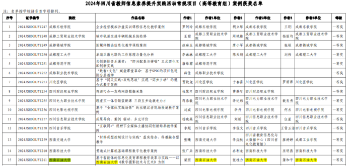 近日,四川省教育廳公布“2024年四川省教師信息素養提升實踐活動”常規項目獲獎名單。我校在此次活動中喜獲佳績,表現突出。