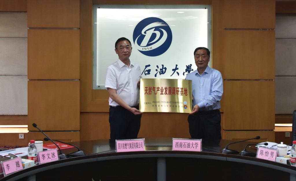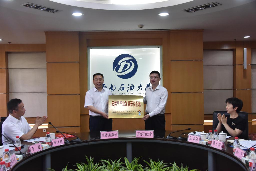 西南石油大學黨委書記、中心主任孫一平為天然氣產業發展調研基地授牌,王志強為天然氣產業發展研究基地授牌。
