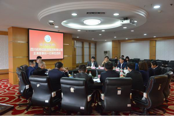 簽約儀式在辦公樓810會(huì)議室舉行,西南石油大學(xué)黨委書記、四川石油天然氣發(fā)展研究中心主任孫一平,四川省明信能源集團(tuán)有限公司董事長(zhǎng)、四川中英智慧質(zhì)量工程技術(shù)研究院有限公司院長(zhǎng)王濤等出席并進(jìn)行了會(huì)談。