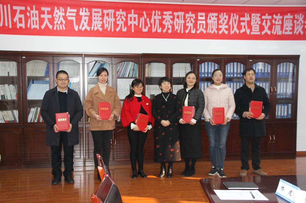2021年11月25日,四川石油天然氣發(fā)展研究中心在思學(xué)樓D416會(huì)議室舉行2018-2019年度優(yōu)秀研究員頒獎(jiǎng)儀式暨座談交流會(huì)。參會(huì)人員有:西南石油大學(xué)科研處副處長陳怡男教授、中心咨詢委員會(huì)主任何沙教授及獲得優(yōu)秀專家和優(yōu)秀研究員稱號(hào)的各位老師。