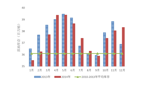 圖4. 2013-2014年美國原油商業庫存走勢對比圖(數據來源:EIA)