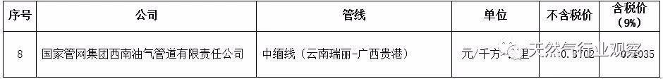 延伸1:國家管網天然氣管輸價格表