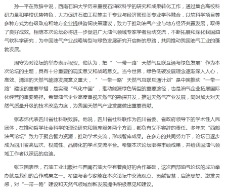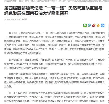 第四屆西部油氣論壇“一帶一路”天然氣互聯(lián)互通與綠色發(fā)展在西南石油大學隆重召開--中國能源網(wǎng)