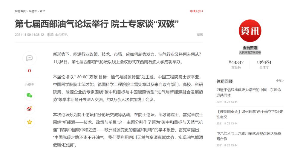 第七屆西部油氣論壇舉行 院士專家談“雙碳”---金臺資訊 人民網官方網易號
