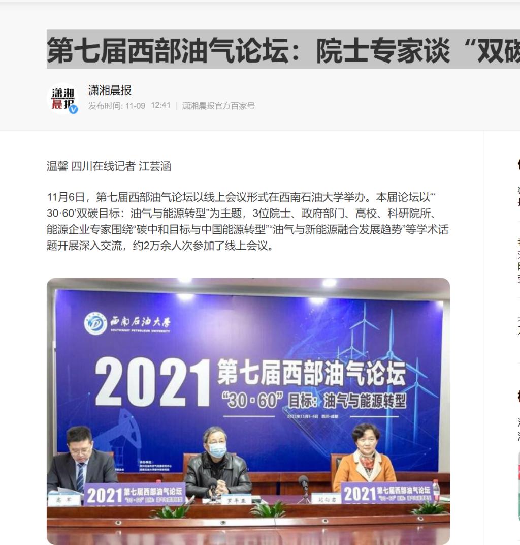 第七屆西部油氣論壇:院士專家談“雙碳”---瀟湘晨報(bào)