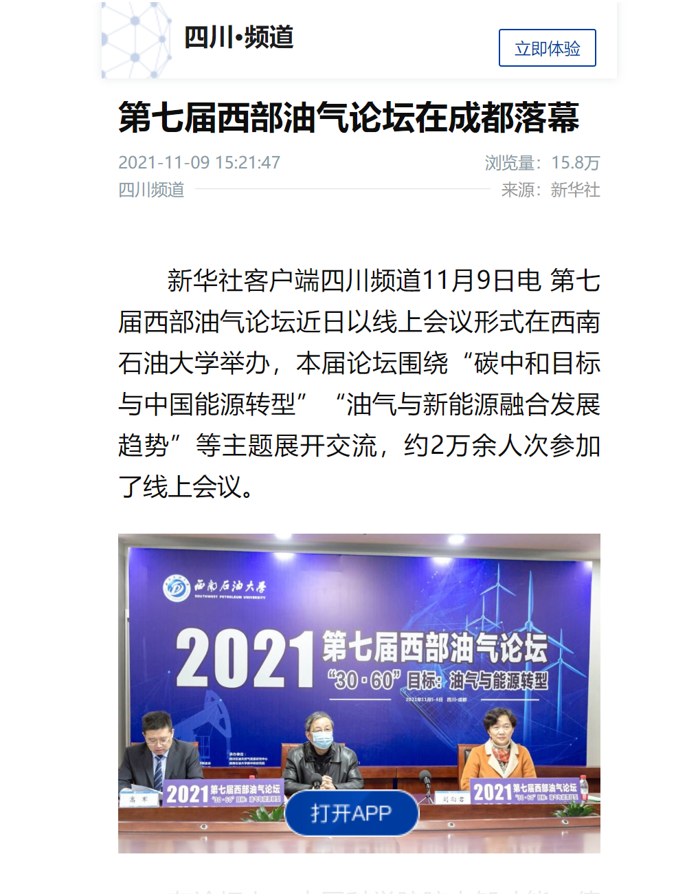 第七屆西部油氣論壇在成都落幕 --- 新華社報(bào)道