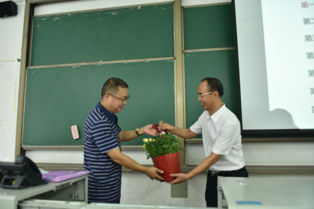在明德樓教室,當(dāng)黨委常委、副校長張烈輝為《化工原理》授課教師劉瑾送上鮮花時(shí),教室里的同學(xué)們齊聲喝彩:“好!”全班響起熱烈的掌聲。