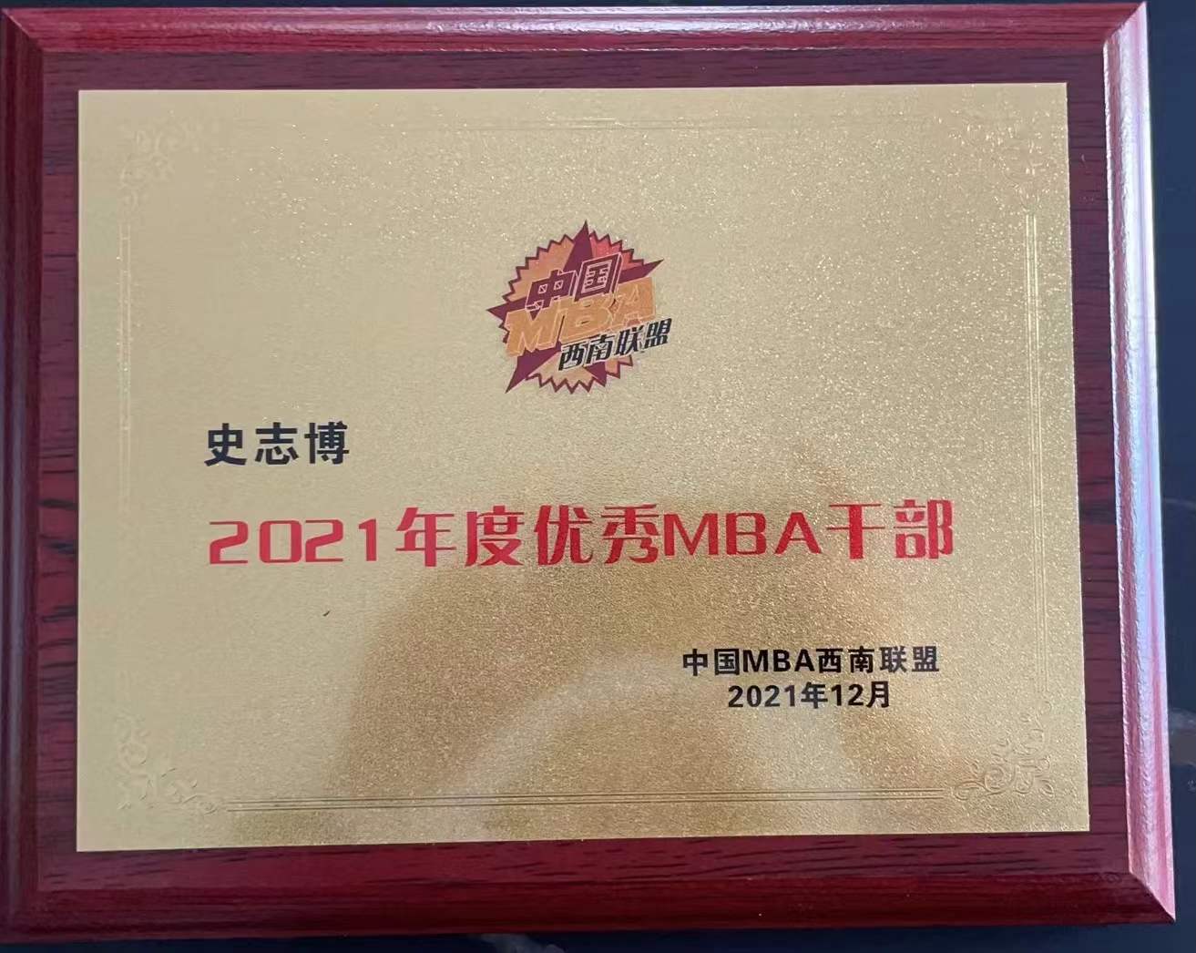 在接下來的年度表彰環節中,我校2020級史志博、2020級張典同學獲得中國MBA西南聯盟“2021年度優秀MBA干部”稱號。