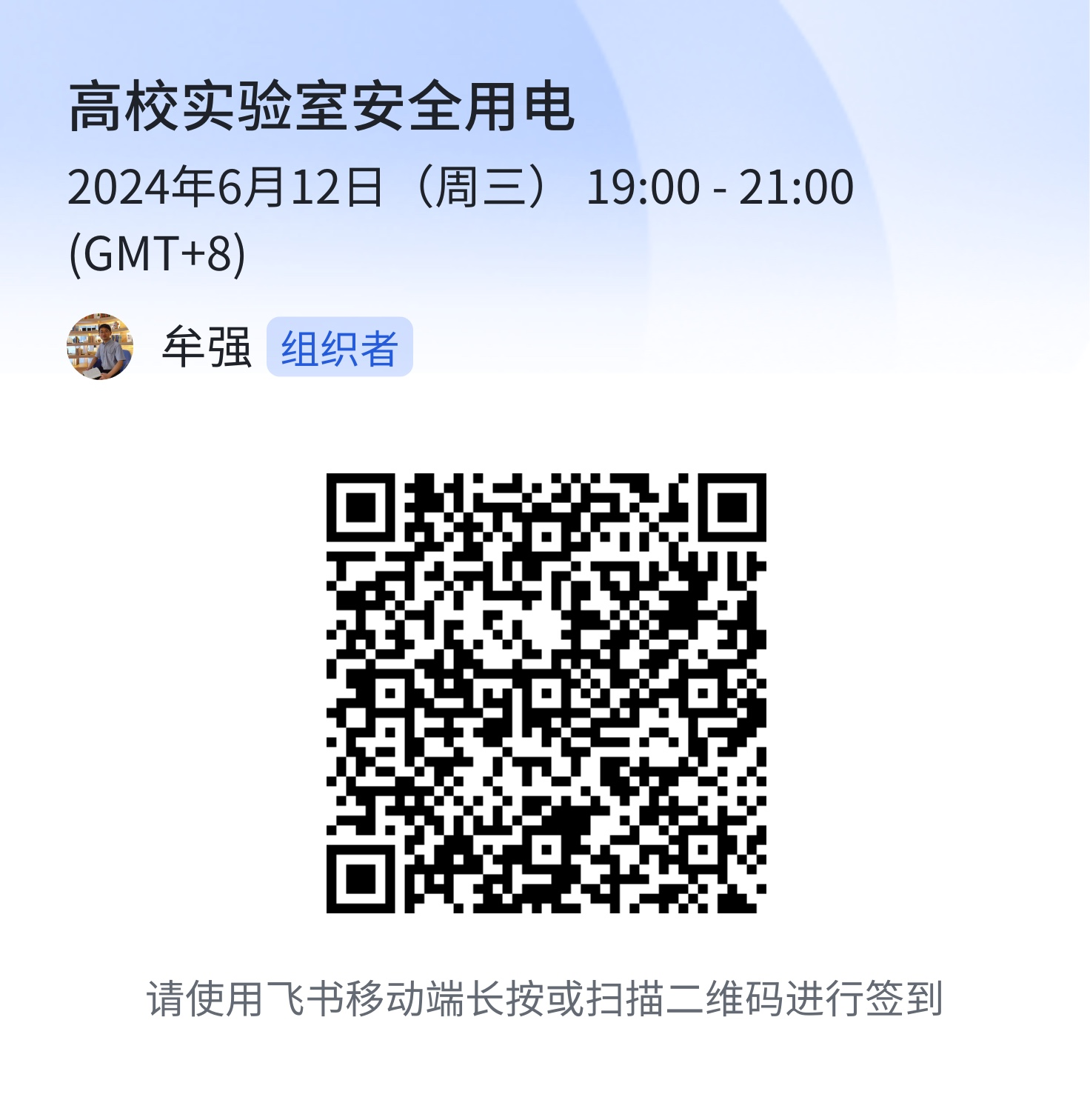 請(qǐng)各單位實(shí)驗(yàn)室務(wù)必高度重視此次培訓(xùn),認(rèn)真組織人員參加,共同提高實(shí)驗(yàn)室電氣安全管理水平。參會(huì)人員以“學(xué)院+實(shí)驗(yàn)室”進(jìn)入飛書會(huì)議,同一實(shí)驗(yàn)室多人參會(huì),可在后面編號(hào),例如石工+國(guó)重A101-01。